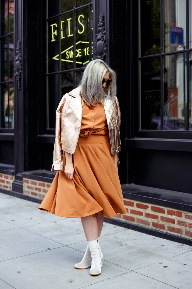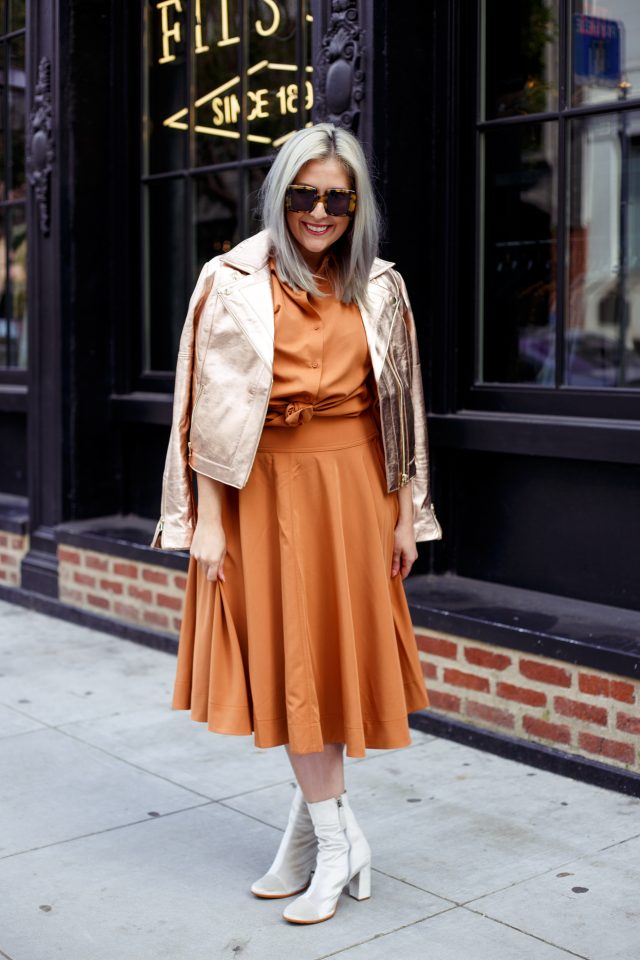 That moto jacket is killer!! I love the metallic!!