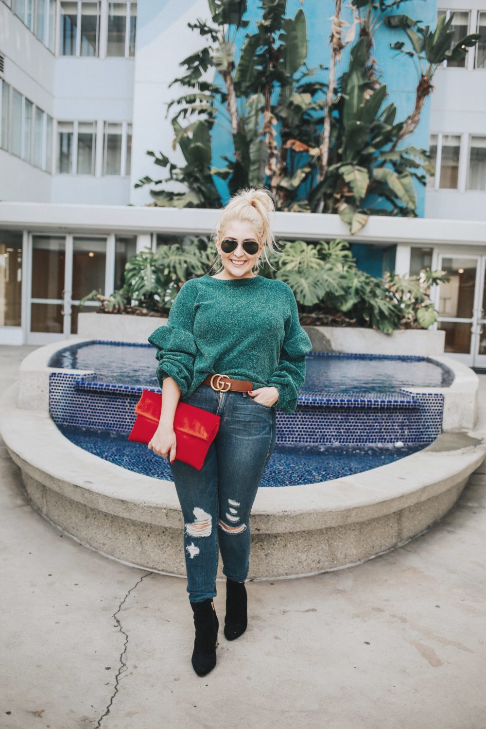 [What I Wore: Sweater, Jeans, Boots, Sunglasses, Earrings, + Bag]