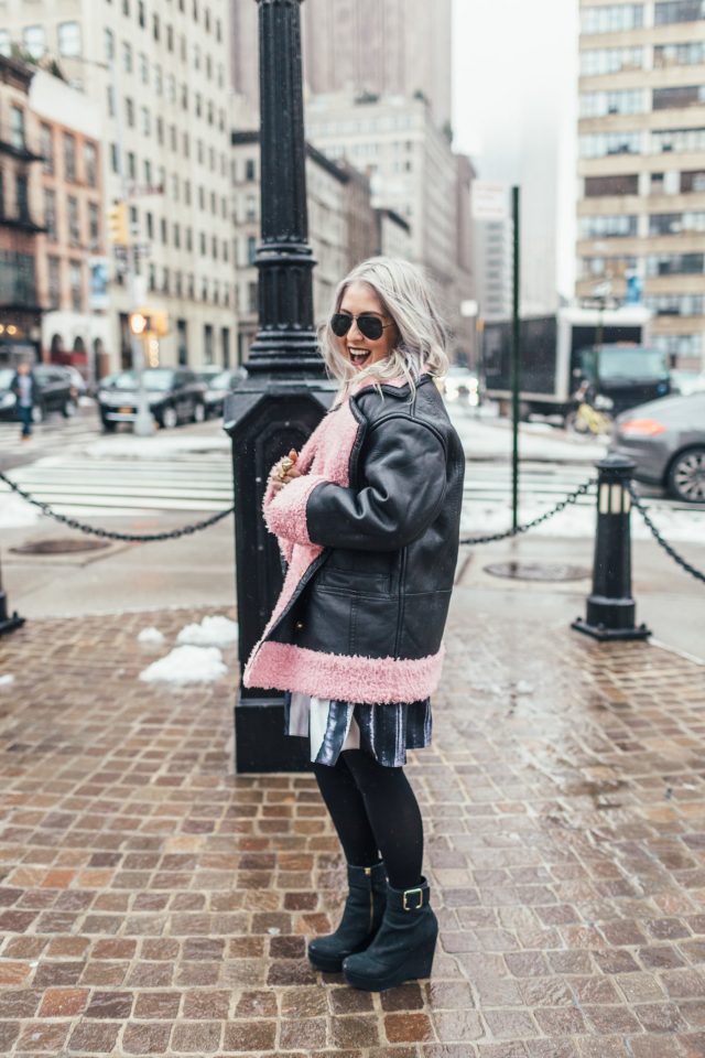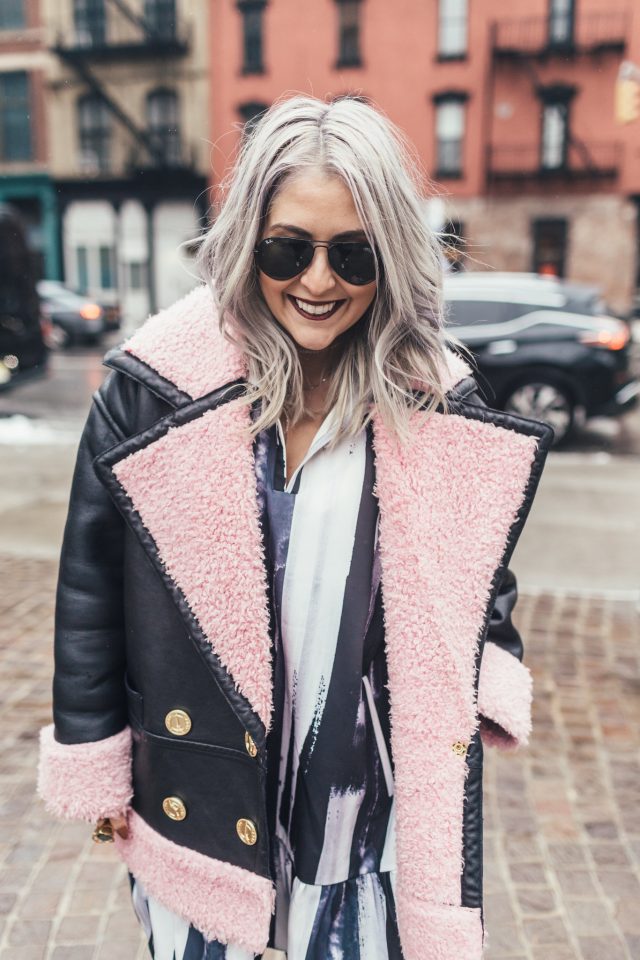Jacket: Kenzo x H&M, Pile Lined Leather Jacket. Adore this option that I spotted on the streets of New York.